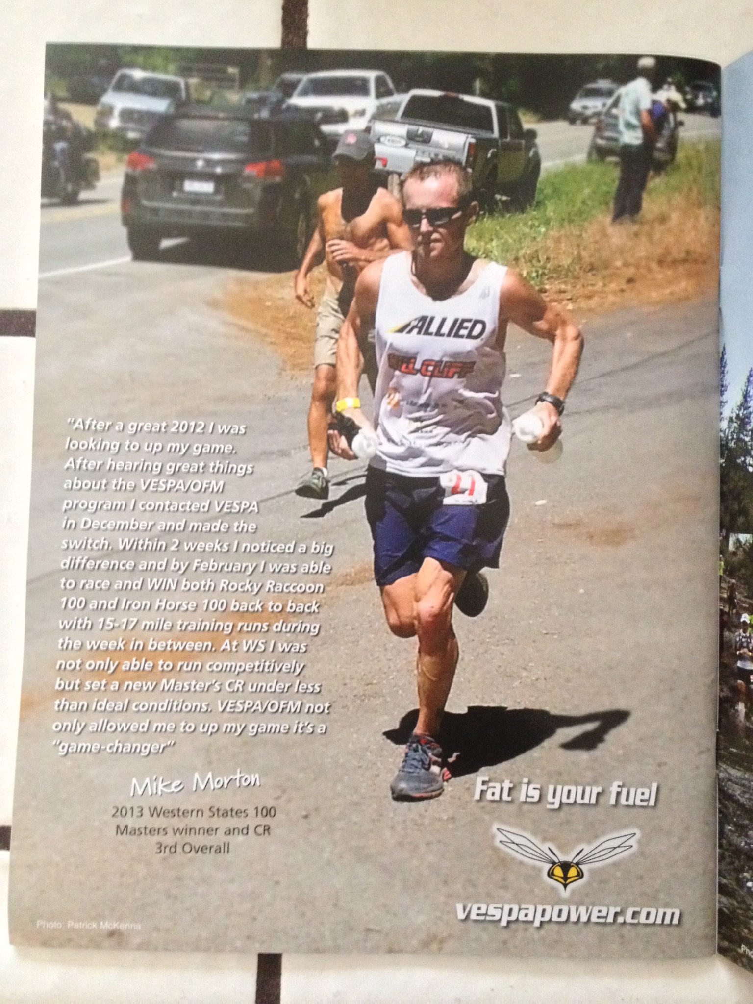 I’m sure you’ve all seen the ads in UltraRunning or TrailRunner Magazine, the one that goes “Fat is your fuel” with a pic of an outrageously fit runner powering up a trail and a testimonial about how they’re running better on less calories, or got leaner and faster since switching to a low carb or OFM (optimized fat metabolism) diet. Yes, you’ve seen it. Have you wondered about it?