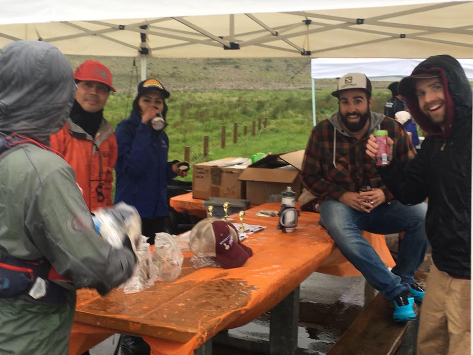 Upon finishing, I consumed a bowl of chili, a bowl of vegetable lentil soup and a chicken apple sausage. Then we told war stories. (photo courtesy Mark Tanaka)